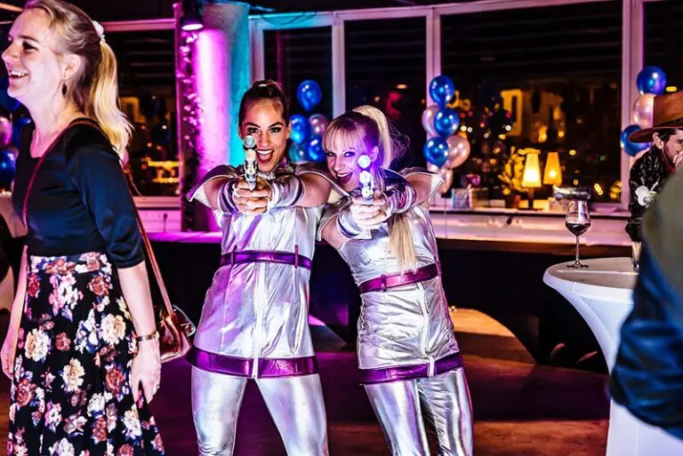 Onze future showgirls delen glow-in-the-dark-sticks uit om langzaam in hogere intergalactische sferen te komen. De DJ begint te draaien en de voeten komen van de LED dansvloer. Tussendoor kun je heerlijk onderuit gezakt relaxen in de ‘Silver Lounge’. Een intergalactisch feest waar nog lichtjaren lang over nagepraat zal worden!